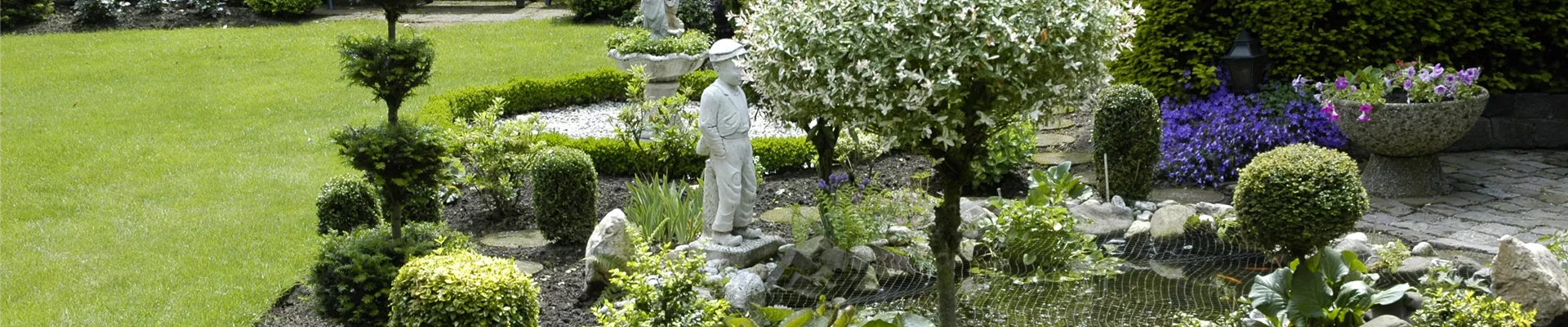 Gartengestaltung mit Pflanzgefäßen in verschiedenen Gärten