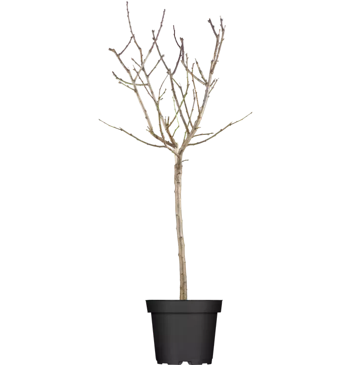 Zwergzwetsche 'Jojo' ist ein buschig, aufrecht und breit wachsender Kleinbaum, der eine Höhe von 2 - 3 m und eine Breite von 4 - 6 m erreichen kann.